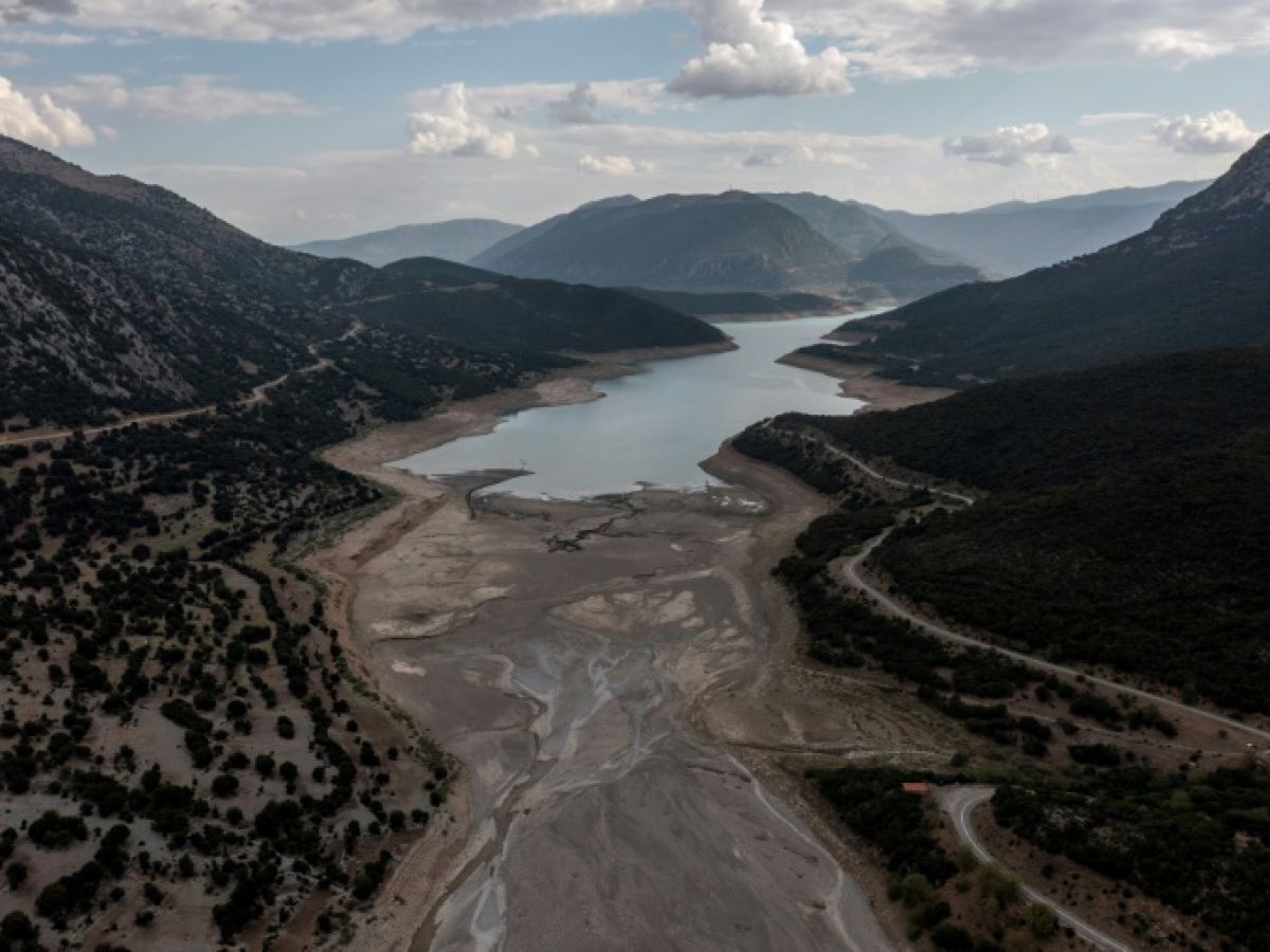 Le département des Alpes-Maritimes est lui aussi victime de sécheresse. Sur cette photographie, un homme se tient sur le lac artificiel du Broc, près de Nice.