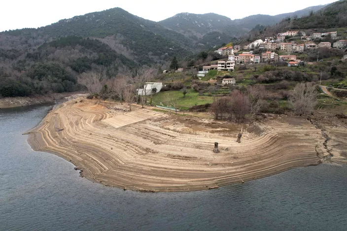 De l'autre côté de la Méditerranée, en Corse, le niveau du lac Tolla a lui aussi fortement diminué, comme il est possible de le voir sur cette photo prise le 24 février dernier.