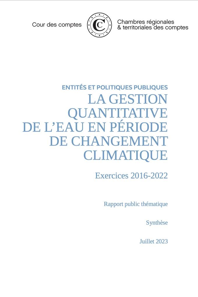 Pour assurer la protection de ce patrimoine, la politique publique de l’eau doit préserver le bon fonctionnement du grand cycle de l’eau, en lui permettant d’assurer le renouvellement de la ressource et de garantir que les besoins des milieux naturels et les besoins humains sont satisfaits . La gestion quantitative de l’eau doit garantir que les prélèvements sur la ressource en eau sont compatibles avec le bon état des milieux naturels, des nappes et des cours d’eau . Elle est devenue, dans le contexte du changement climatique, une préoccupation aussi importante que celle de sa qualité . C’est pourquoi la Cour et les chambres régionales des comptes ont décidé de consacrer cette enquête à la gestion quantitative de l’eau en période changement climatique . Les conclusions en sont présentées peu de temps après la présentation d’un plan consacré à l’eau par le Gouvernement le 30 mars 2023 .