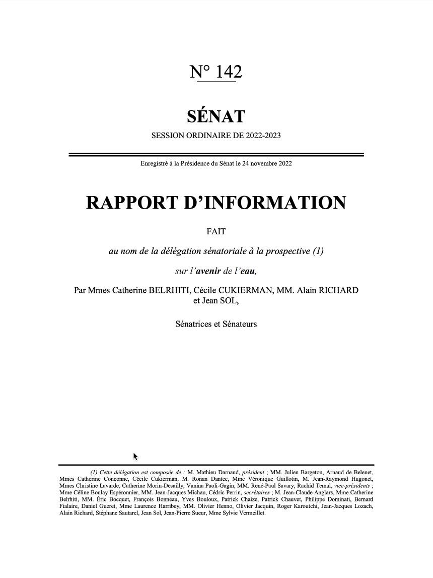 Rapport d'information du Sénat sur l'avenir de l'eau