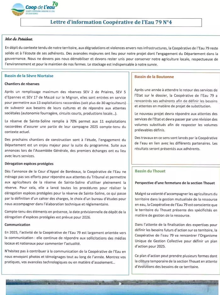 Lettre d'information Coopérative de l'Eau 79 N°4